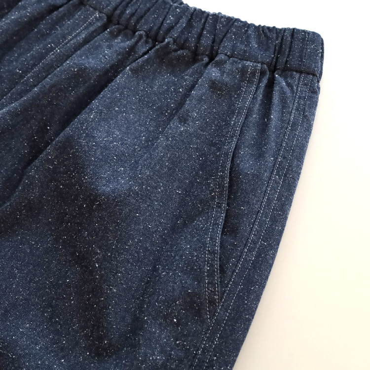 シルクの糸を紡ぐ際に生まれるブーレットノイル(繊維くず)を使用したデニムパンツです。