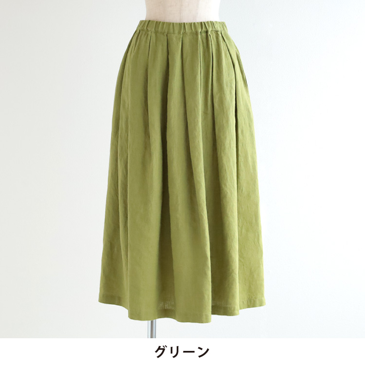 コーディネートが華やぐ上品なリネンスカート。