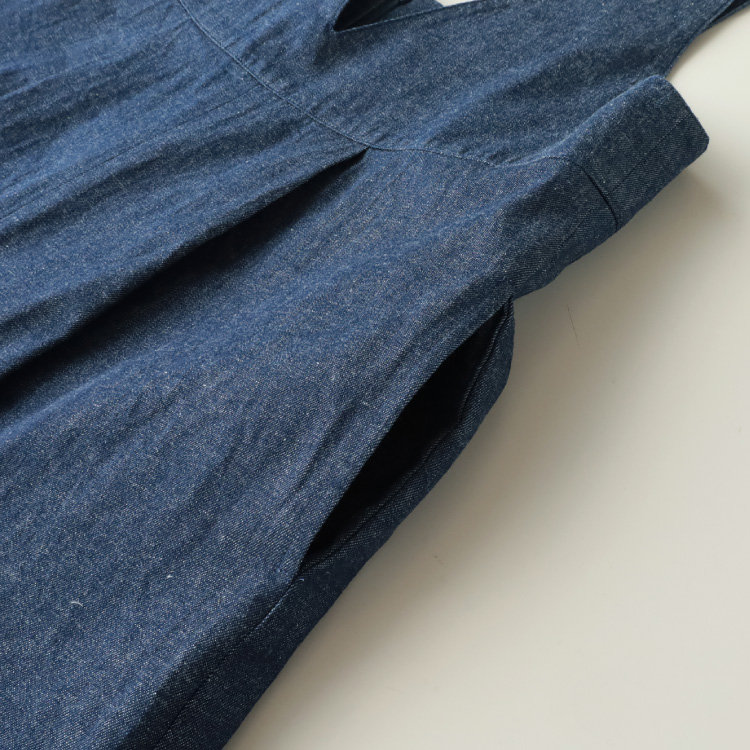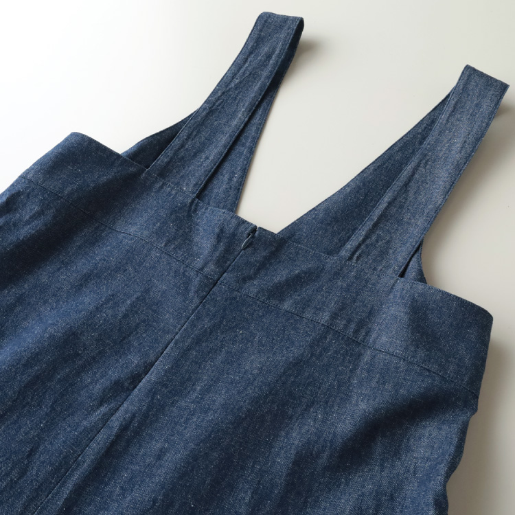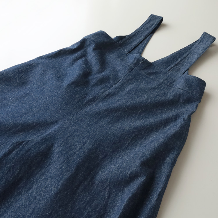当店で人気のやわらかなコットンデニム生地を使い、手軽に大人可愛いスタイルが完成するサロペットを作りました。