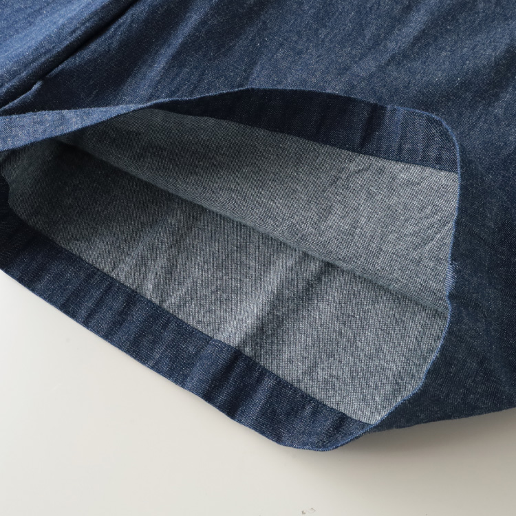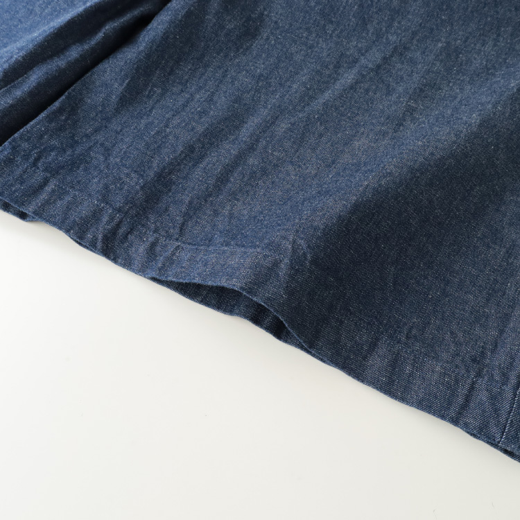 デニムとしてはやや薄手の8ozデニムなので、春・秋にちょうどよく、夏も着用OK。冬はレギンス等を重ねれば、オールシーズンお使いいただけます。