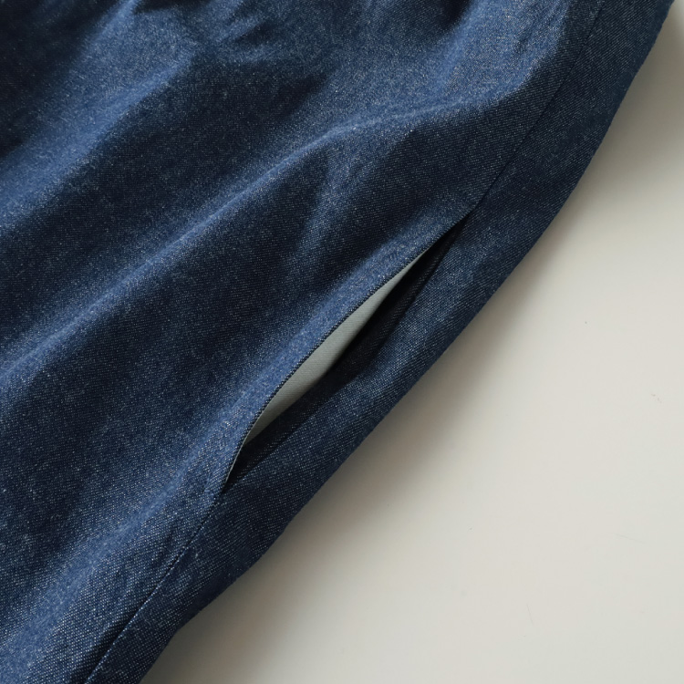 やわらかく着こなしやすい風合いのコットンデニム生地。