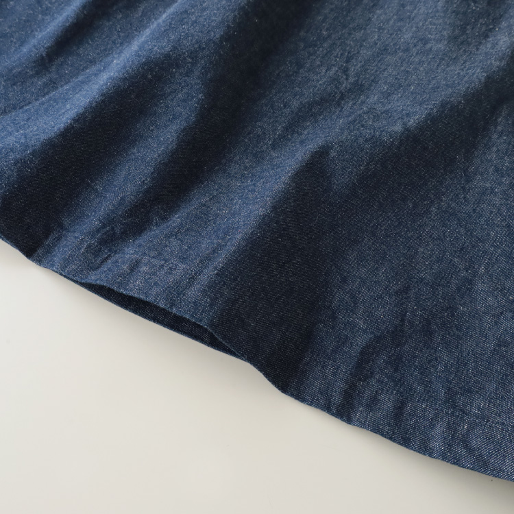 デニムとしてはやや薄手の8ozデニムなので、春・秋にちょうどよく、夏も着用OK。冬も厚手のタイツやレギンス等を合わせれば、オールシーズンお使いいただけます。