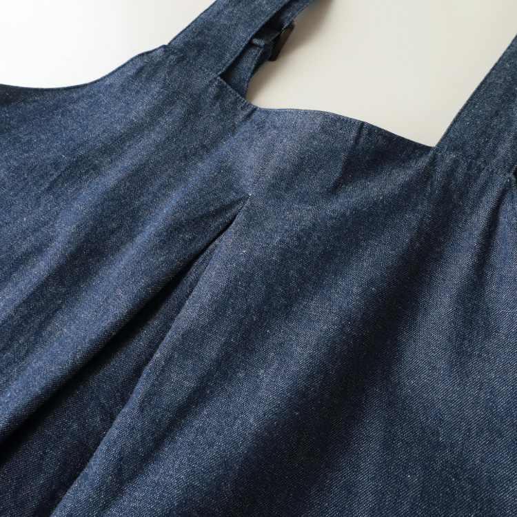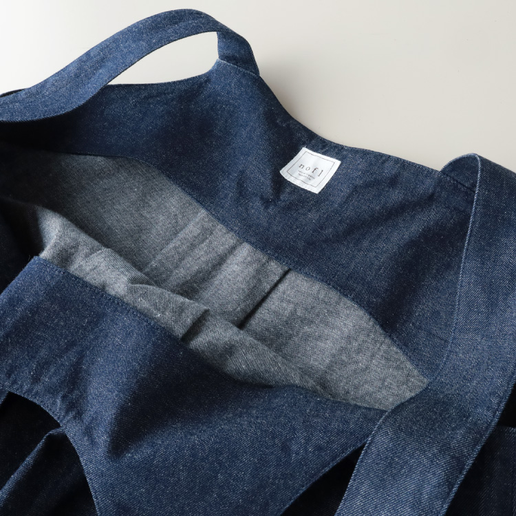 生地の色は程よく深みのある落ち着いたトーンの藍色で、どんなスタイルにも合わせやすく、馴染みやすい優しい色合いです。
