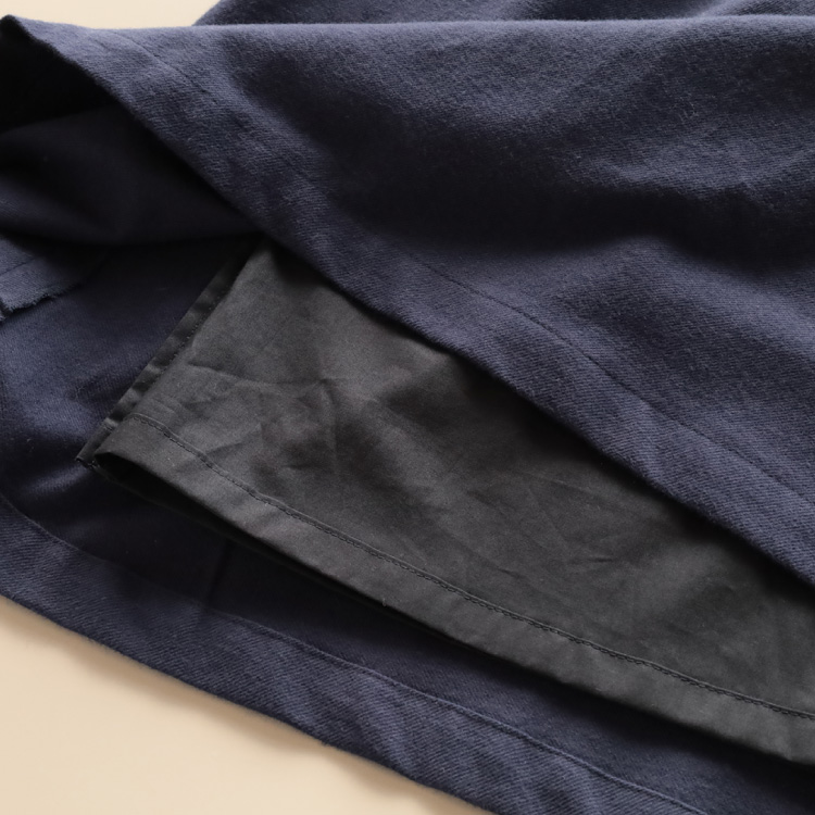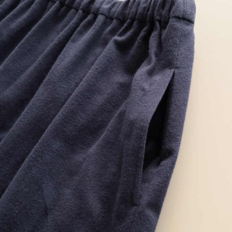 微起毛のやわらかな風合いで軽やかなはき心地。さらっとした肌触りの綿100%裏地付きです。