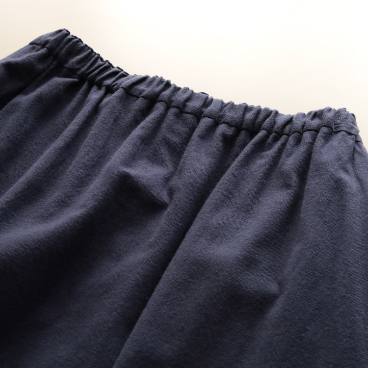 オーガニックコットンを甘撚りにした糸で織られた、ふわっとやわらかなビエラ生地を使用したスカートです。