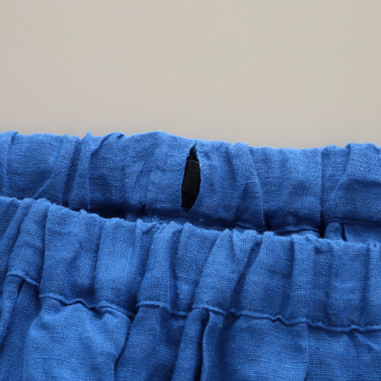 ウエストは総ゴム仕様なので、楽に穿いていただけます。 また、内側に、リボンを通してあるので、締め具合によって、サイズ感を調整できます。 ちなみに、内側にはゴム通し口も開いているので、サイズが合わない場合や、後々、ゴムがダメになってしまった場合も、ゴムの入れ替えが可能です。