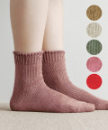 ざっくりとしたローケージで編みたてたリネンソックスです。