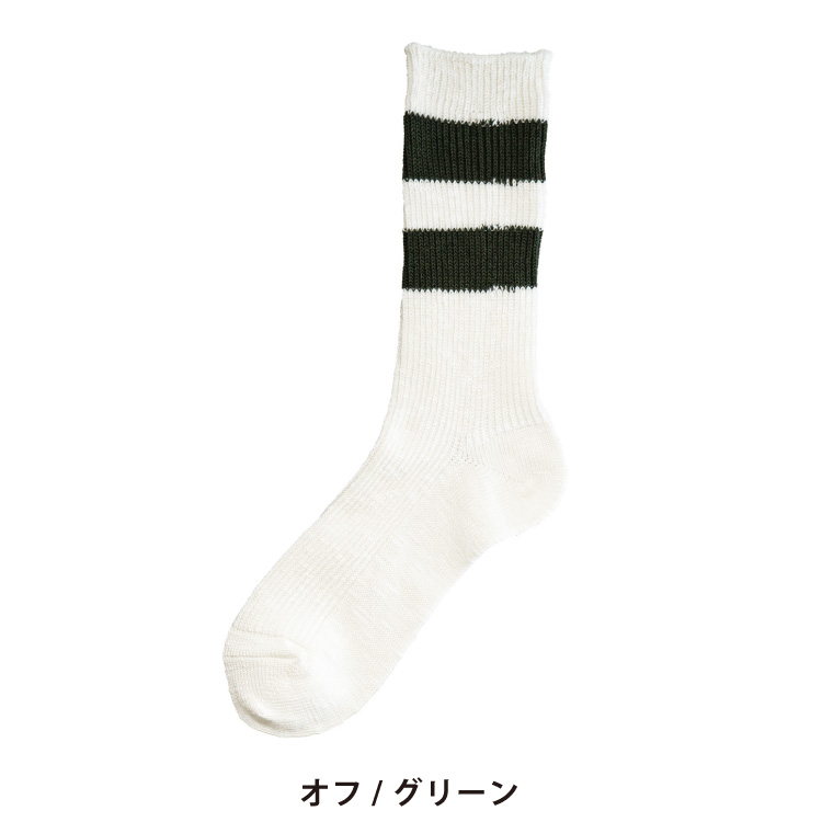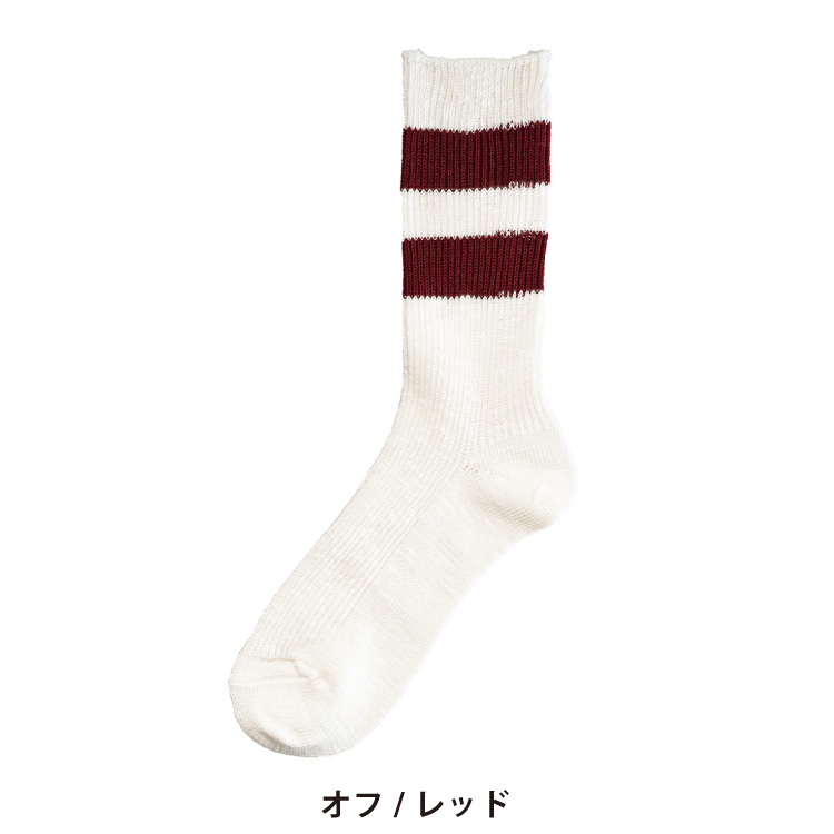 2本の太いラインがアクセントになった、カジュアルな雰囲気の靴下です。