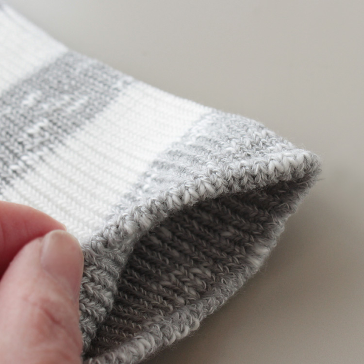 綿スラブをベースに、保温性と吸湿性に優れたメリノウールを引き揃えた糸を使用しています。