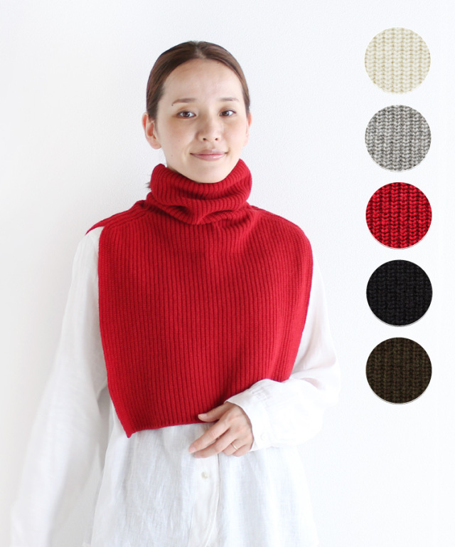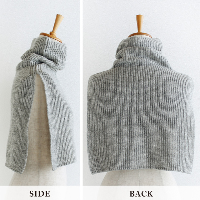首から肩まであるネックウォーマーは脇が閉じていない為、分量感のある服にも着用出来ます。