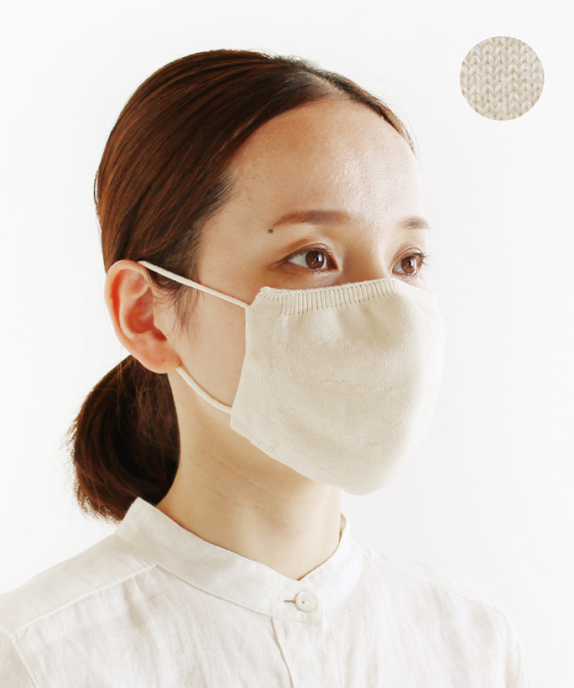 オーガニックコットンの糸で編んだ洗って繰り返し使えるニットマスクです。