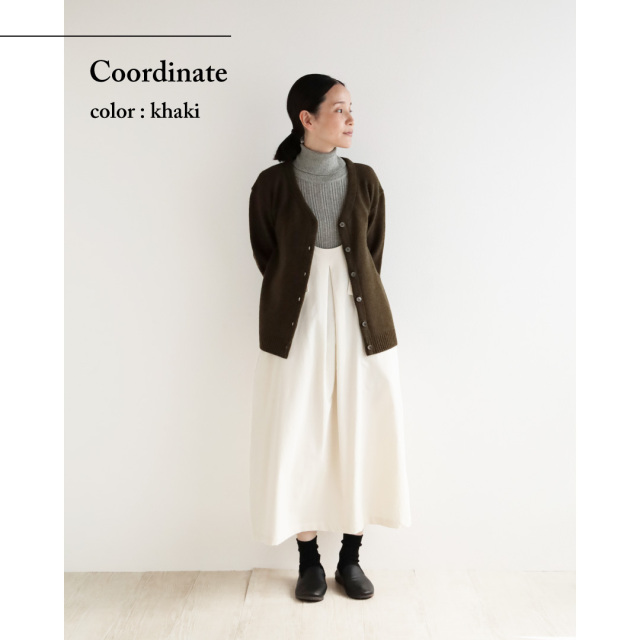 ボリュームのあるボトムスとも好相性。ブラウスや、ワンピースにも、またコートのインにも着やすいので、秋から冬にかけて、めいいっぱい活躍してくれそうです。