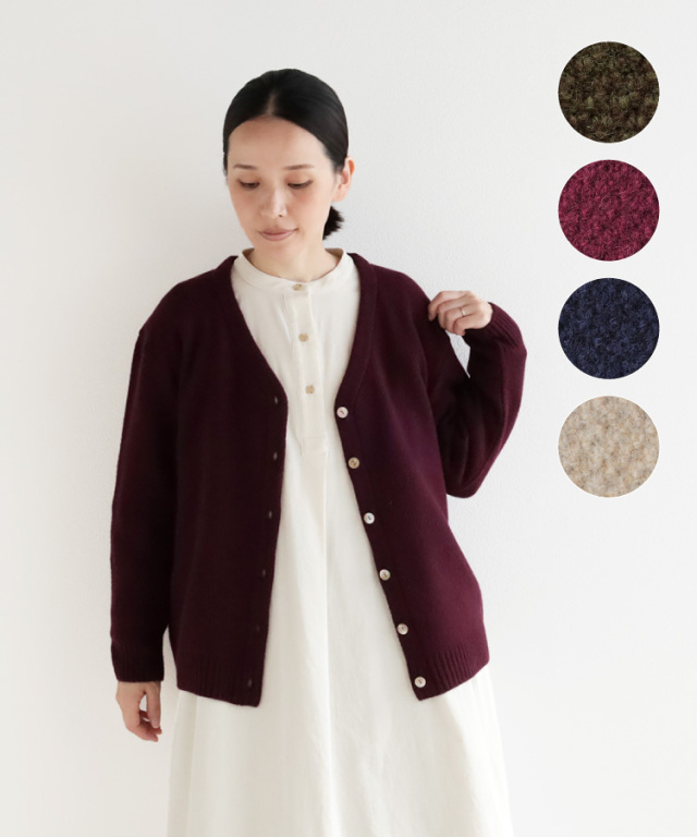 オーストラリアの南東にある、タスマニア島で育った子羊の毛を使用した、ふんわり、軽くて、暖かなニットカーディガンです。