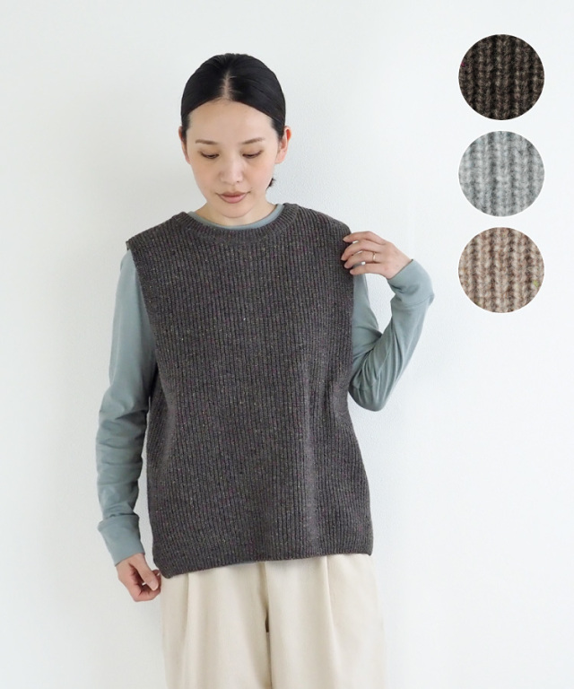 シンプルで合わせやすい片畦編みのニットベストです。