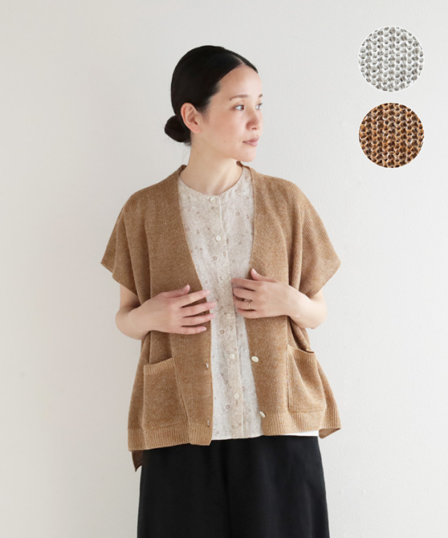 ノルマンディ産の一等亜麻と呼ばれる上質なリネンを使用した、ナチュラルさと上品さを併せ持つ、光沢のきれいなニットベストです。