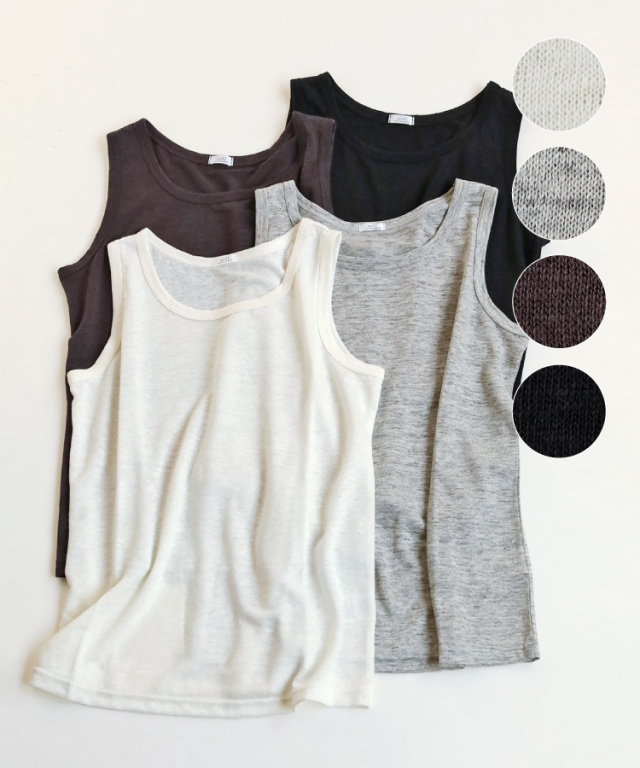 そんな重ね着が億劫になる暑い季節には、リネン素材のタンクトップがおすすめです。