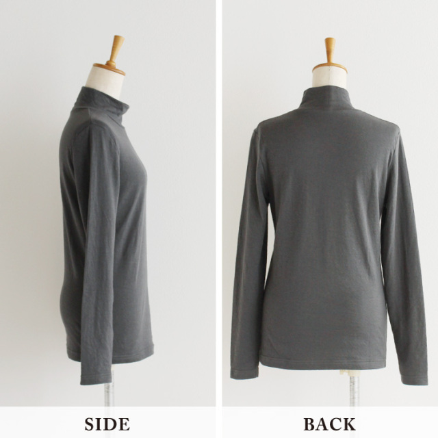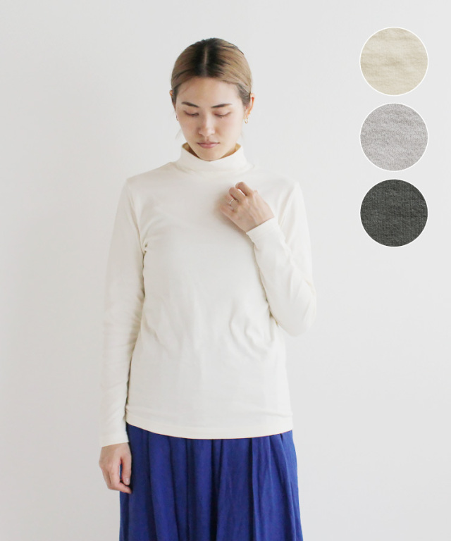 綿100%の接結素材を使用した、ふんわりとやわらかな、肌ざわりが心地いいハイネックプルオーバーです。