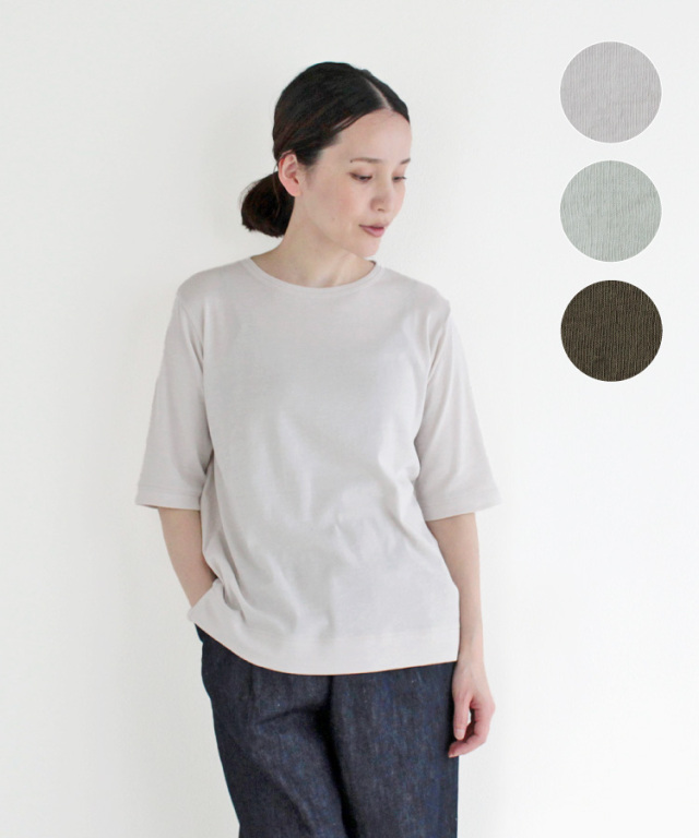 デザインは、程よくゆとりのあるシルエットに、肘が隠れる6分袖がポイント。