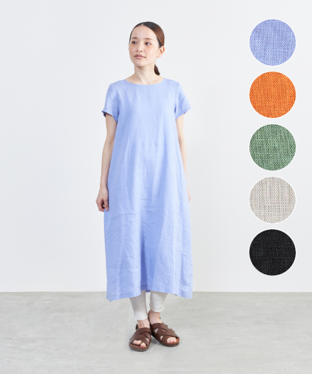 上品な雰囲気で着ていただける、半袖のリネンワンピースです。