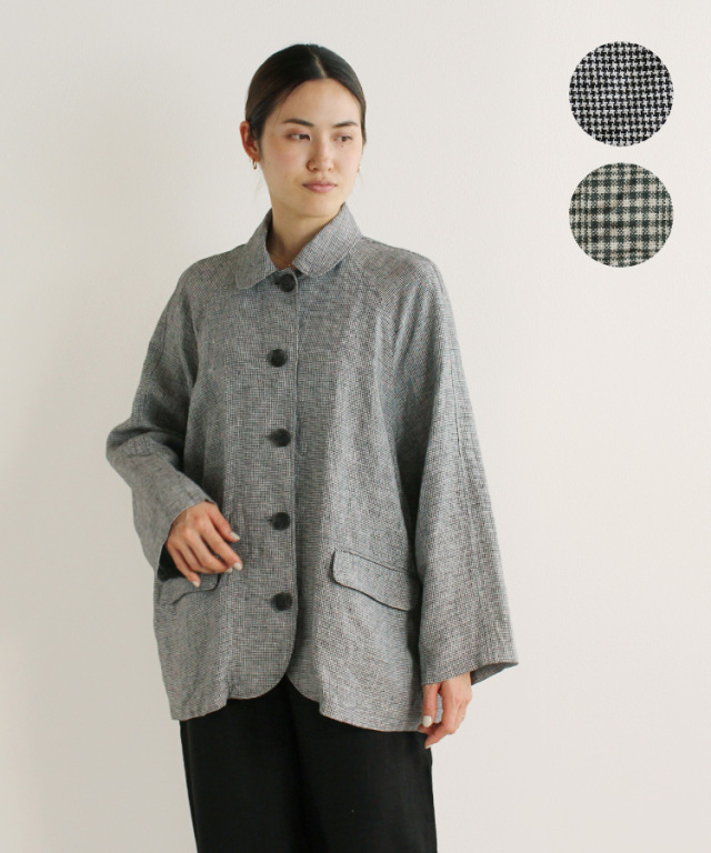 リトアリアリネンのチェック柄生地を使用した、季節の変わり目におすすめのライトジャケットです。