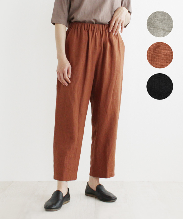 昨年も人気の高かった、リネンのテーパードパンツが今年も登場です。