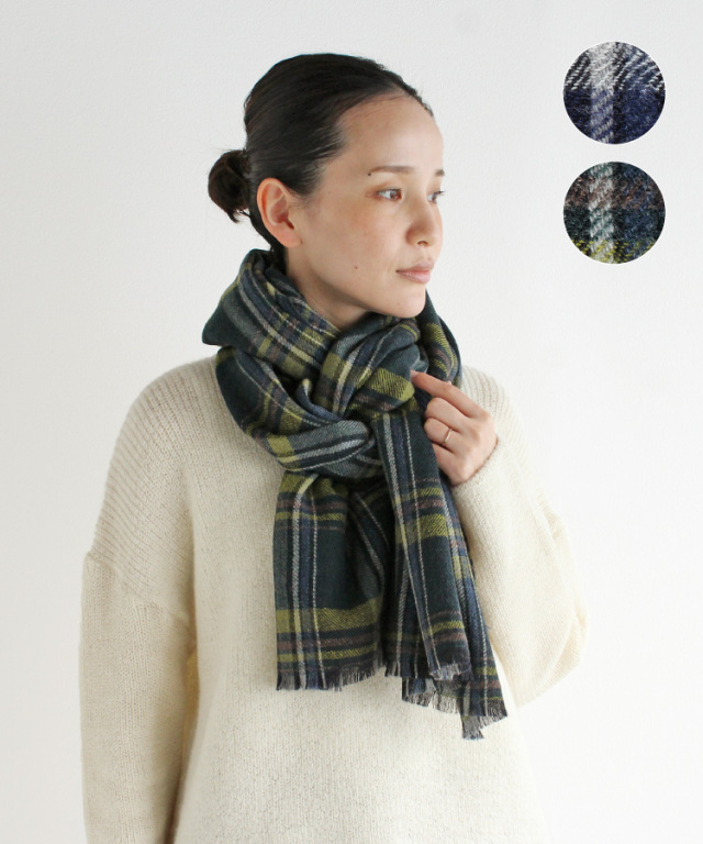 尾州産のチェック柄ウール生地(毛94%・麻6%)を使用したストールです。
