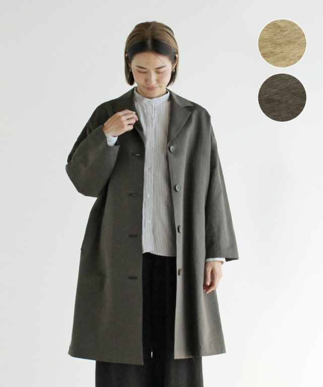 ほんのり光沢感のある綿麻素材を使用した、上品な素材感のワイドコートです。