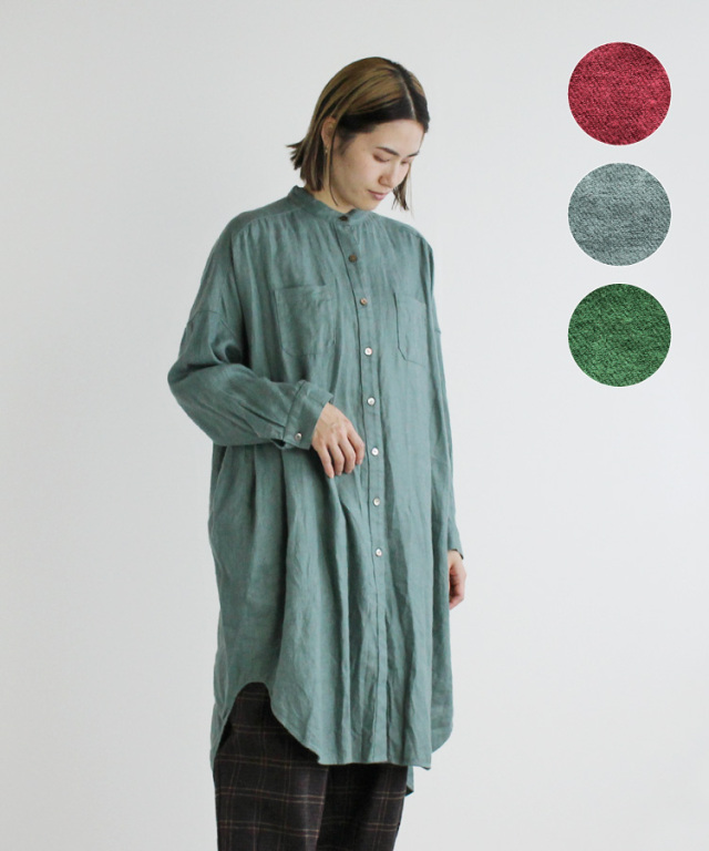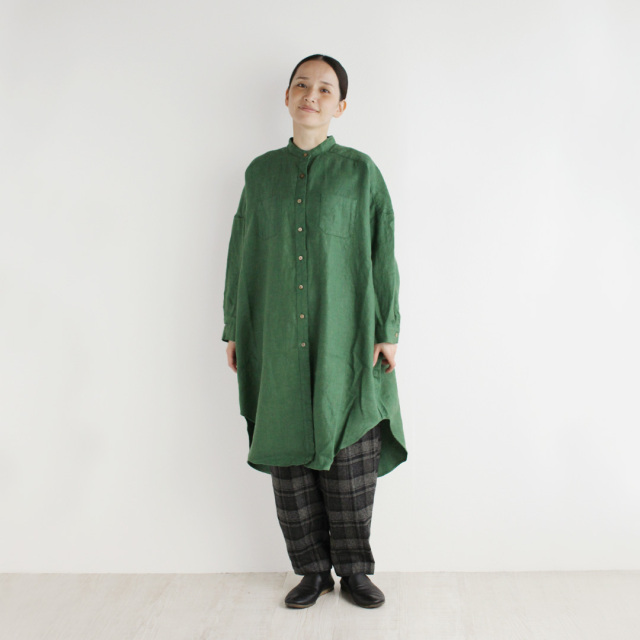 定番の七分袖のビッグシャツよりもロング丈で、ワンピースのような雰囲気でも着ていただけます。