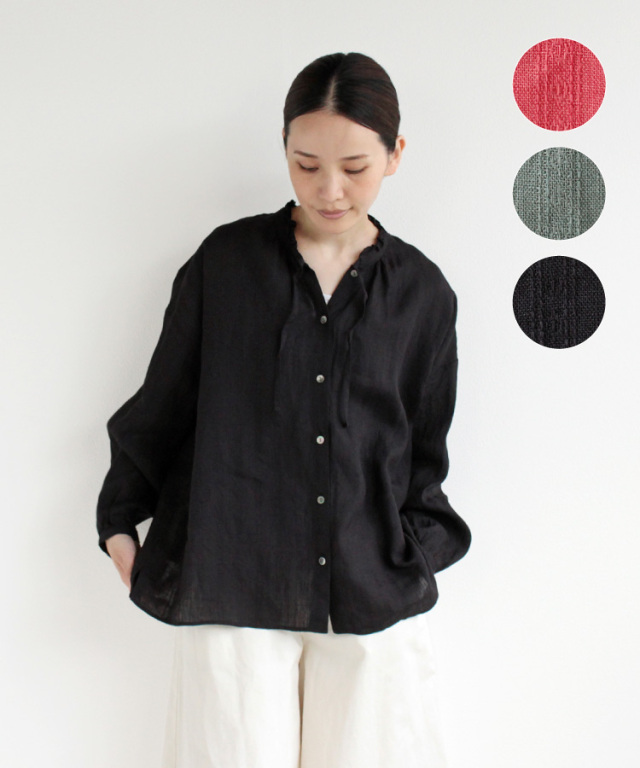 ドビー織りのさりげないストライプ柄が、涼やかで品のある表情をプラスする、リネンのブラウスです。