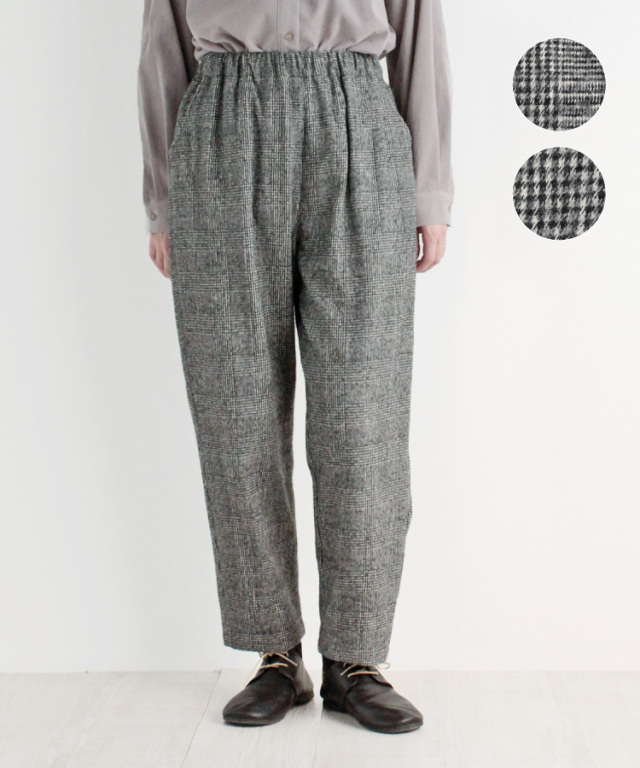 モノトーンのグレンチェックと千鳥の2柄展開で、シャープな柄ですが、生地の風合いによって、やわらかな見え方になっており、素朴でヴィンテージ感のある雰囲気を漂わせます。
