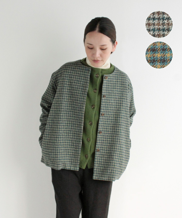 綿100%なのにウールのような質感が特徴の、コットンツイード生地で作ったジャケットです。