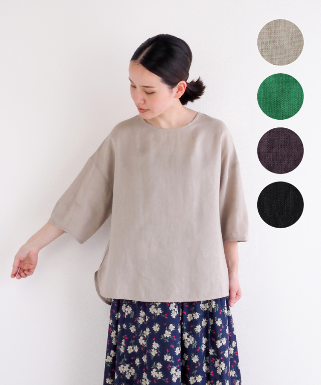 ノフルこだわりのリトアニアリネン生地を使った、クルーネックブラウスです。
