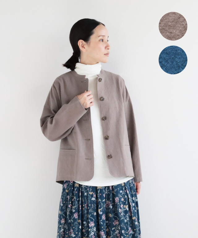 ナチュラルな風合いの綿麻キャンバス生地で作ったジャケットです。