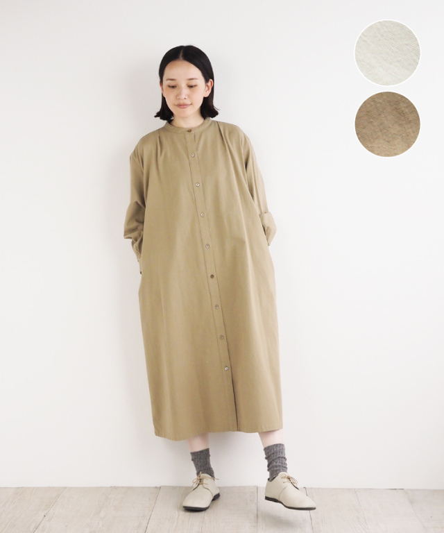 シンプルだけど、ドレープ感のあるシルエットが女性らしい、前あき仕様のワンピースです。