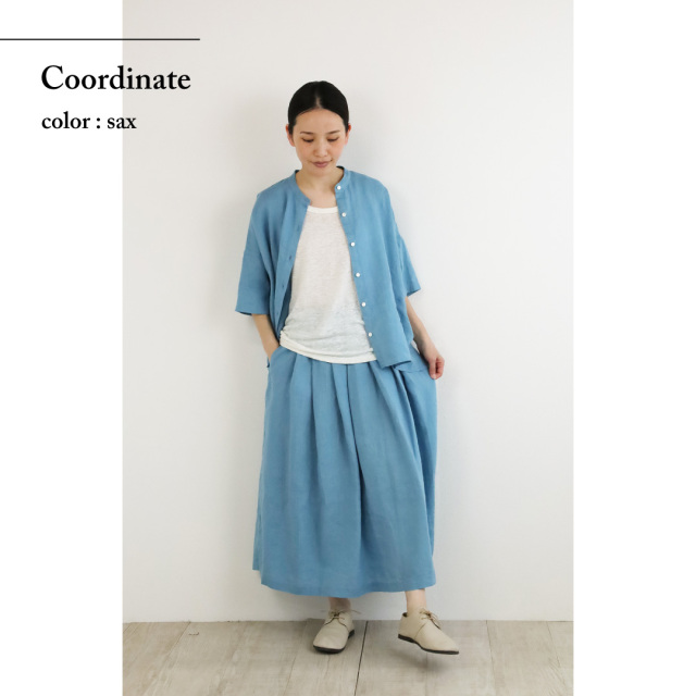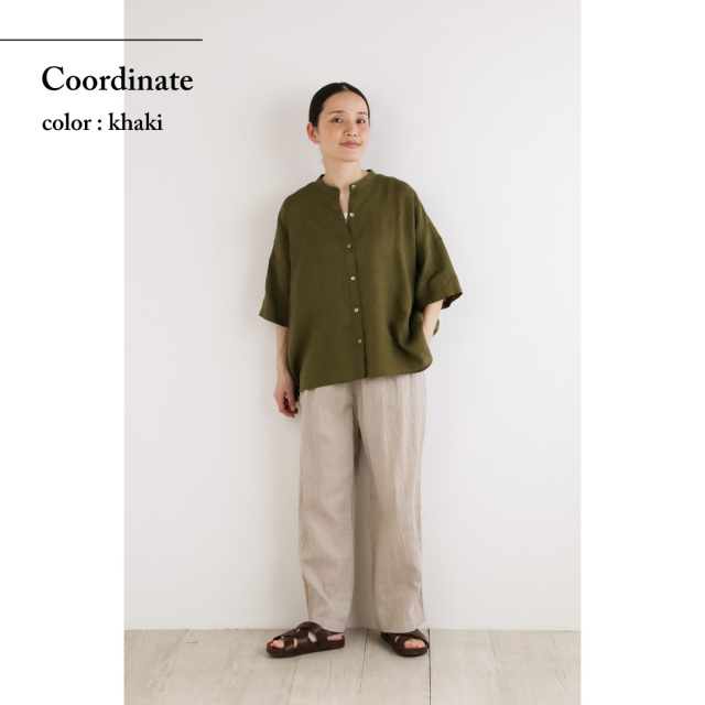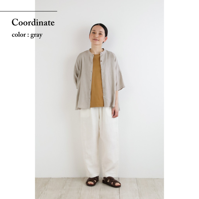 くったりやわらかな薄手のリトアニアリネン生地を使用しているため、ほどよい落ち感があり、すっきりと着こなしていただけます。
