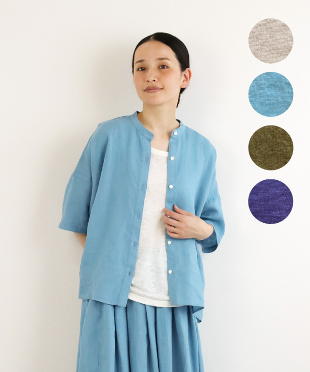 ノフルこだわりのリトアニアリネンの薄手生地を使用した、スタンドカラーのブラウスです。