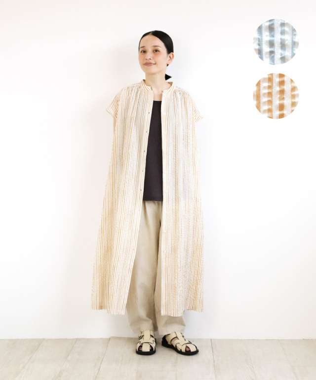波打つようなストライプ柄が印象的な、綿ローンリップル生地を使用しています。