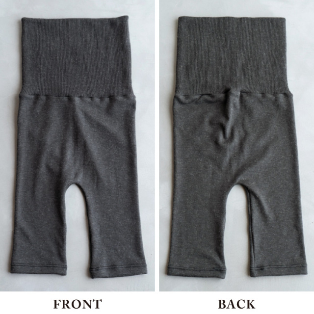 股上は合計38cm。腹巻部分はゴムを使用せず、軟らかくて良く伸びるリブの二重仕立てで、締め付け感なくお腹を優しく暖めてくれます。