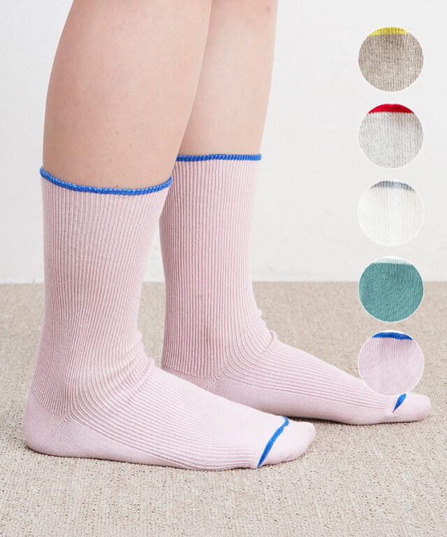 履き口と足指付け根部分にアクセントカラーが施されていて、上品な中にも遊び心が。